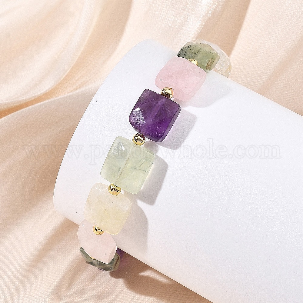 Квадратные браслеты из натурального розового кварца, кварцевого кристалла, цитрина, перидота и аметиста для женщин., С латунными круглыми бусами