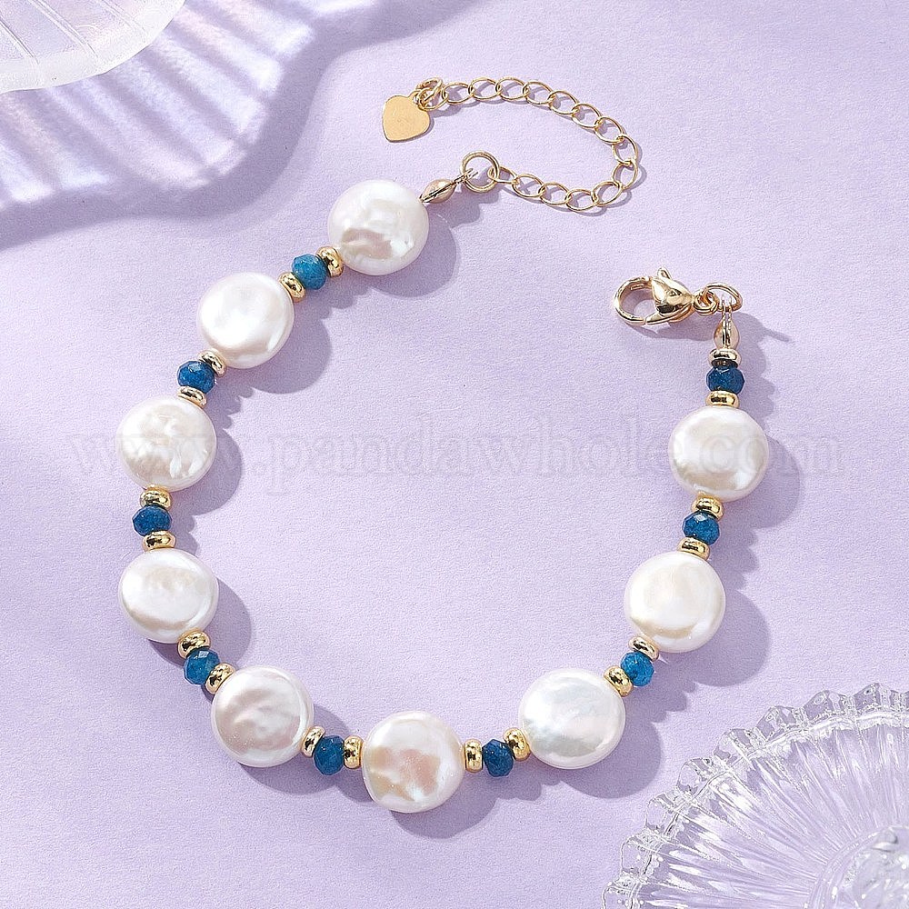 Браслеты из натурального барочного жемчуга кеши, окрашенного натурального малазийского нефрита и латунных бусин для женщин, монета и рондель