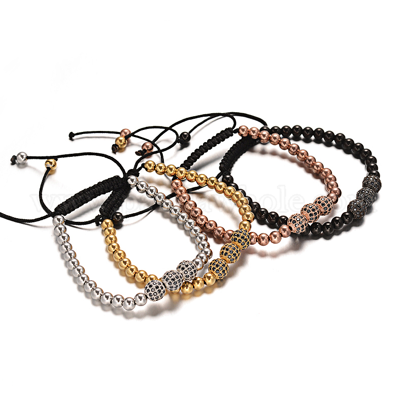 Круглые 304 из нержавеющей стали плетеный из бисера браслеты, с латунными микро проложить Цирконом бусы, 50~90 мм
