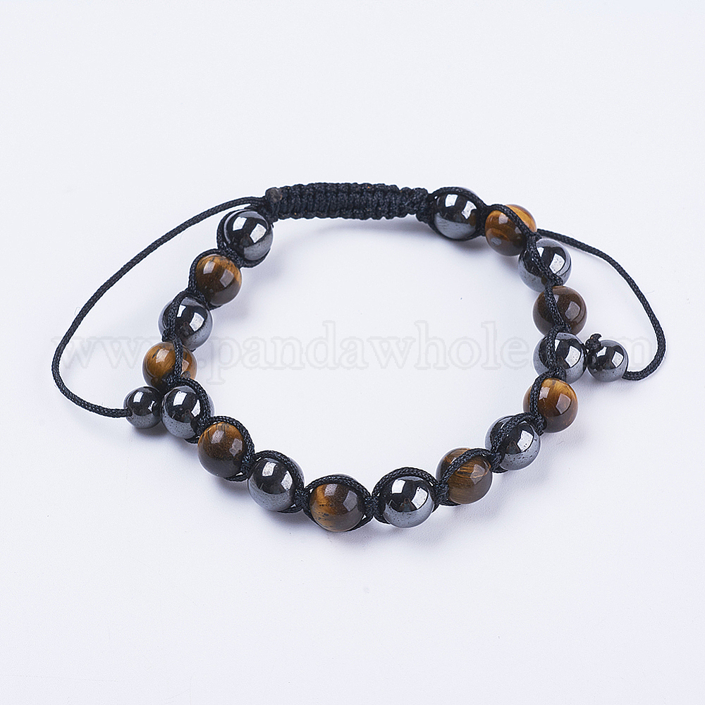 Регулируемые нейлоновые шнур плетеный браслеты из бисера, с магнитным синтетическим гематитом и естественным тигровым глазом круглые бусины
