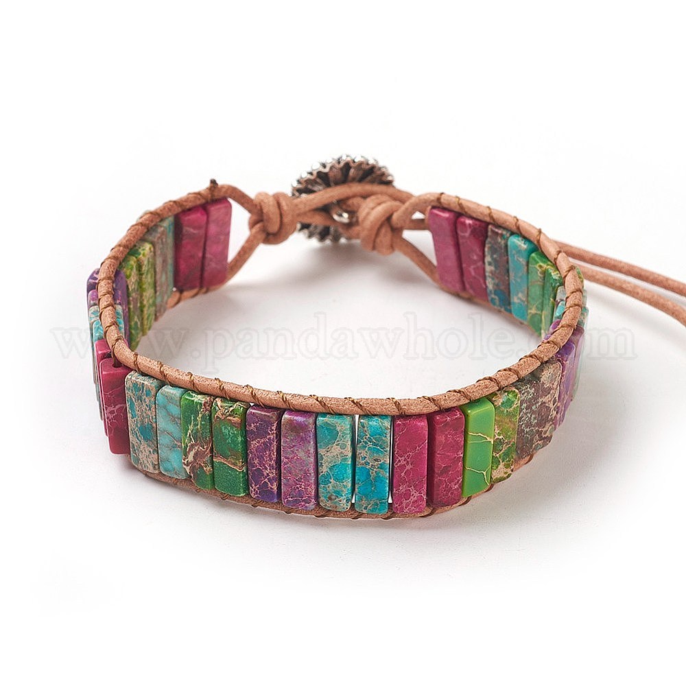 Натуральный регалит / имперская яшма / морские отложения браслеты из бисера с яшмой, с кожаным шнуром и застежками из сплава, окрашенные, цветок, античное серебро