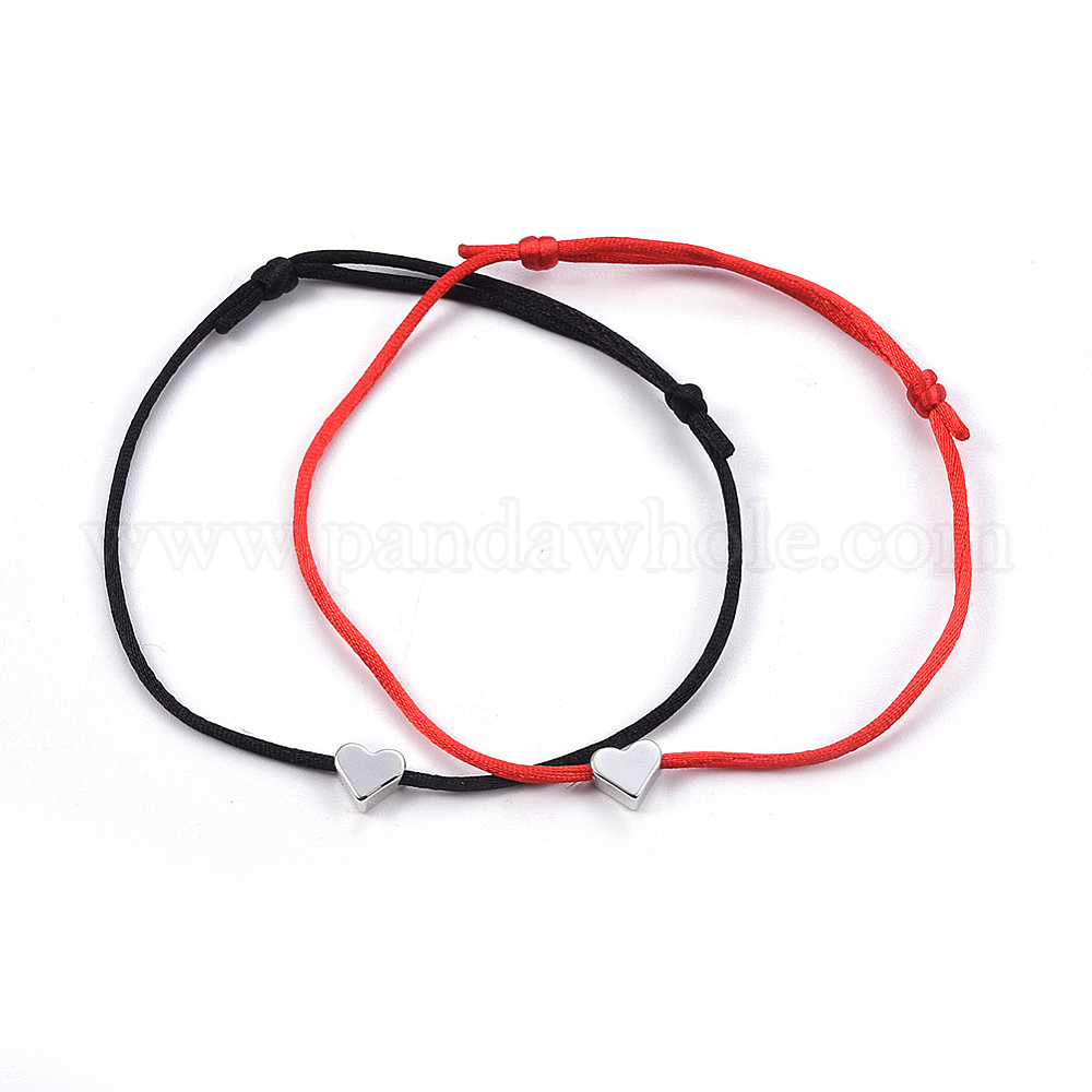 Браслеты из нейлоновой нити, с латунной бисера, без свинца и без кадмия, сердце