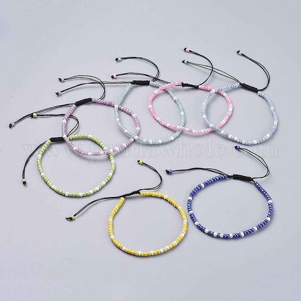 Регулируемые нейлоновые нити плетеные браслеты из бисера, со стеклянными бисеринами, непрозрачных цветов lustered, Цейлон круглых, круглые