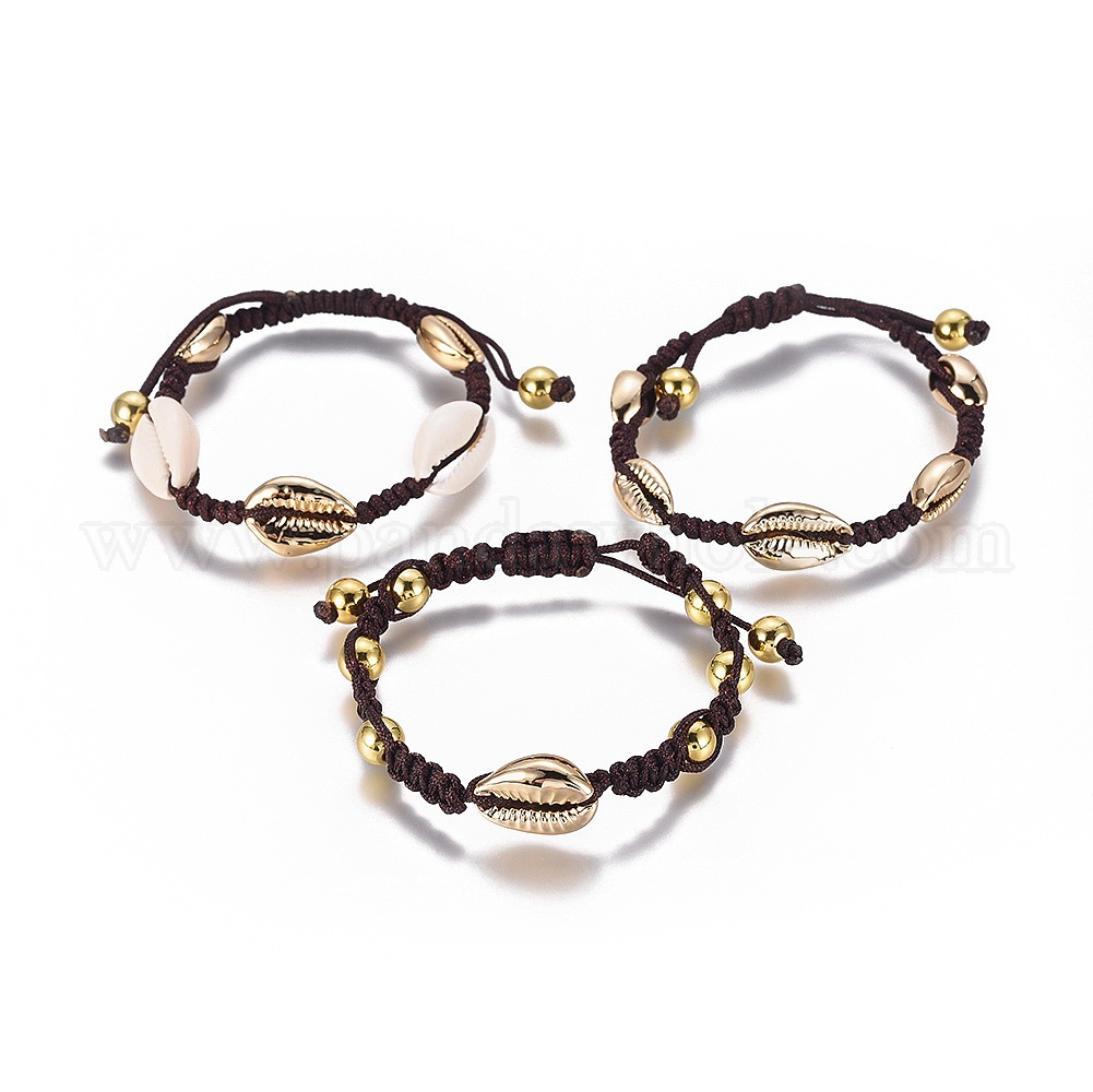 Нейлоновые плетеные браслеты из бисера, с гальваническими шариками и латунными круглыми бусинами, каури оболочки