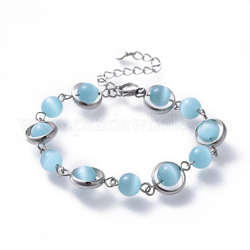 Браслеты из бисера кошачий глаз, с рамками из латунных бус и 304 из нержавеющей стали