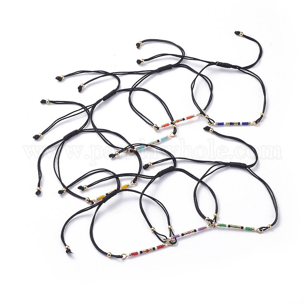 Регулируемые плетеные браслеты из бисера, с бусинами miyuki delica, японский бисер, латунные круглые бусины и нейлоновые нити