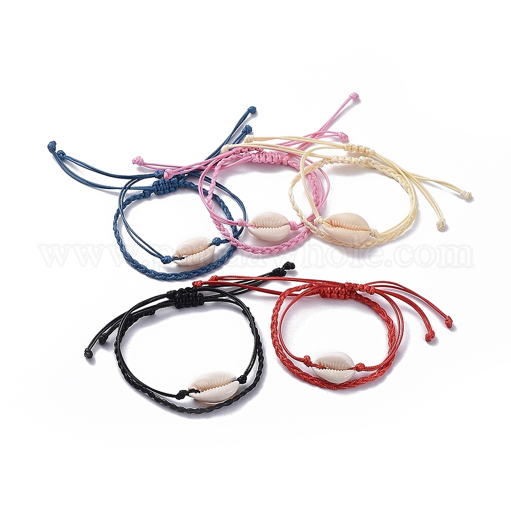 Регулируемые плетеные браслеты из бисера, с бусинками из каури и вощеным полиэфирным шнуром