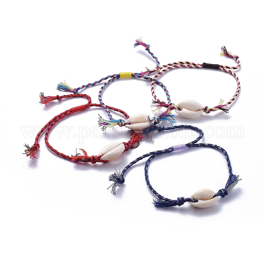 Плетеные браслеты, с натуральными бусинками из каури, нейлоновая нить и хлопковый плетеный шнур