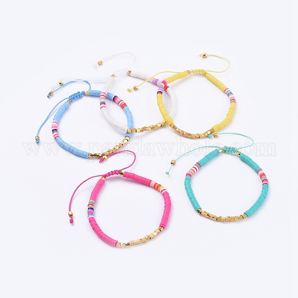 Регулируемые плетеные браслеты из бисера, с бисером хэйси из полимерной глины и латунными бусинами