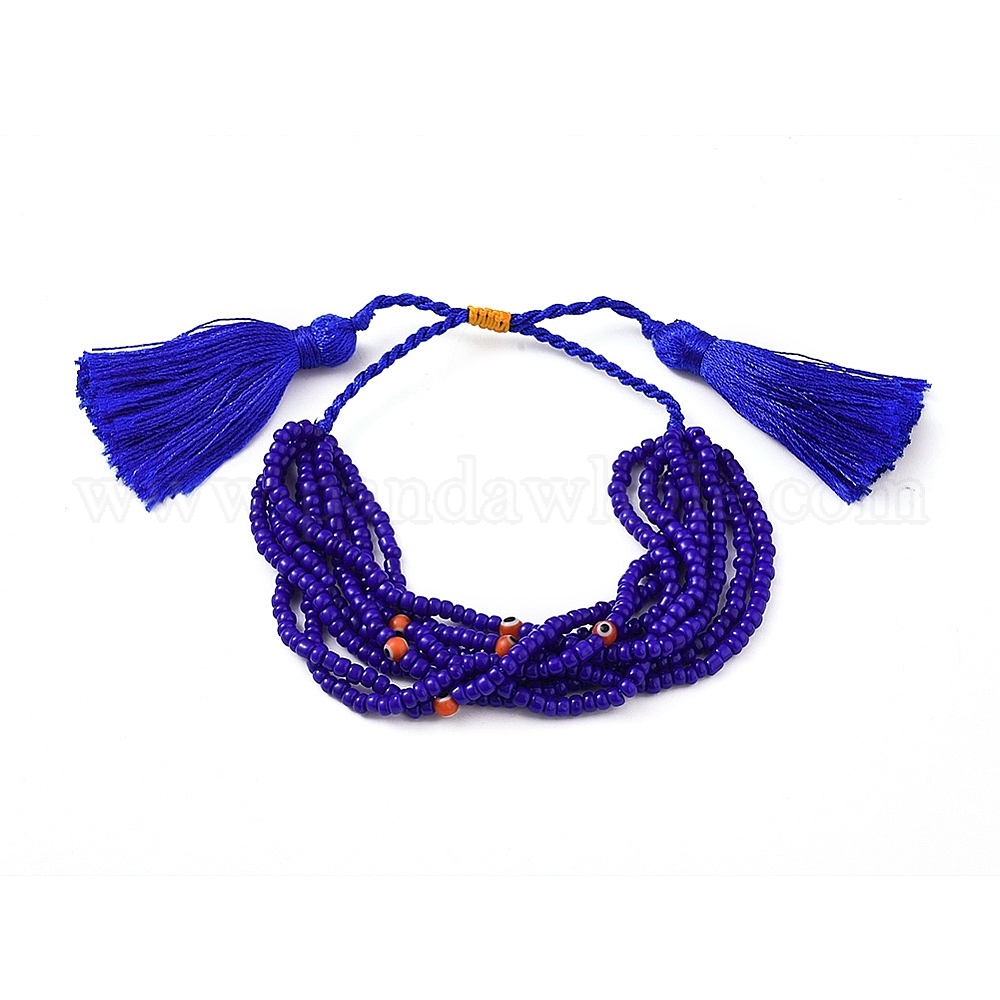 Регулируемые стеклянные бусины плетеные браслеты из бисера, многожильных браслеты, с кисточкой подвесками, злые глаза (02252R)