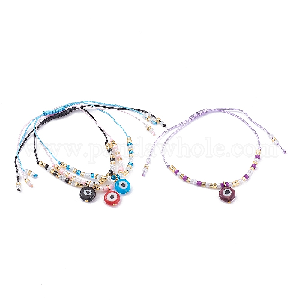 Регулируемые нейлоновые нити плетеные браслеты из бисера, сглаз браслеты с подвеской лэмпворк, с круглыми стеклянными шариками