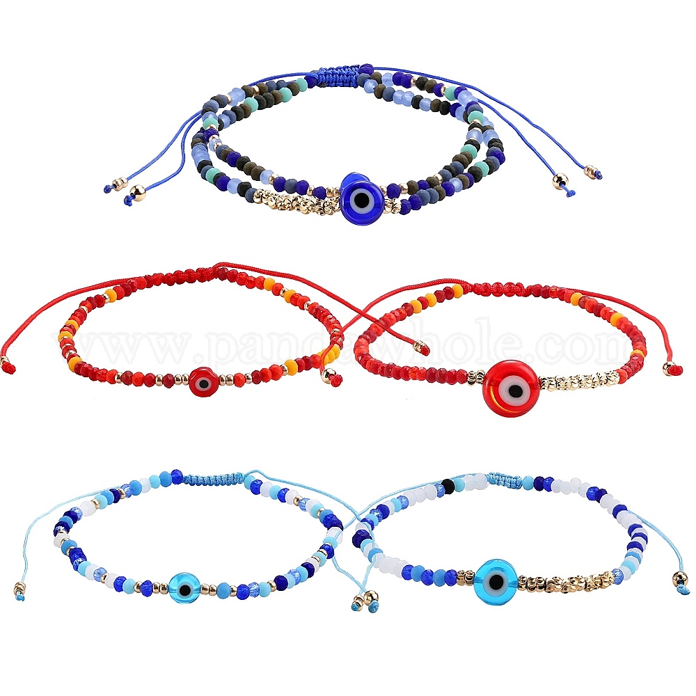 3 наборы 3 цвета регулируемые браслеты из плетеных бусин из нейлонового шнура наборы, со злом бусины глаз, Бисер из стекла , бусины из матового стекла и латунные бусины