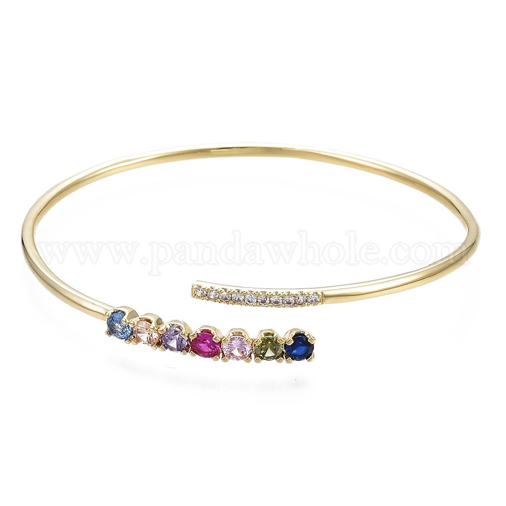 • Разноцветный Кубический цирконий открытый браслет-манжета, настоящий 18k позолоченный латунный браслет с крутящим моментом для женщин, без никеля , красочный, внутренний диаметр: 2-1/4 дюйм (5.6 см)