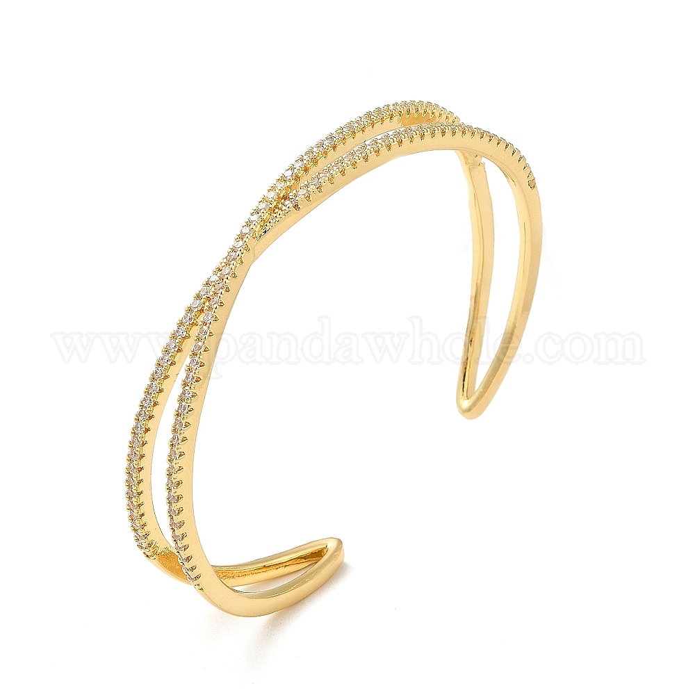 Прозрачный кубический цирконий крест-накрест открытый браслет-манжета, стеллаж для латунных украшений для женщин, без свинца и кадия