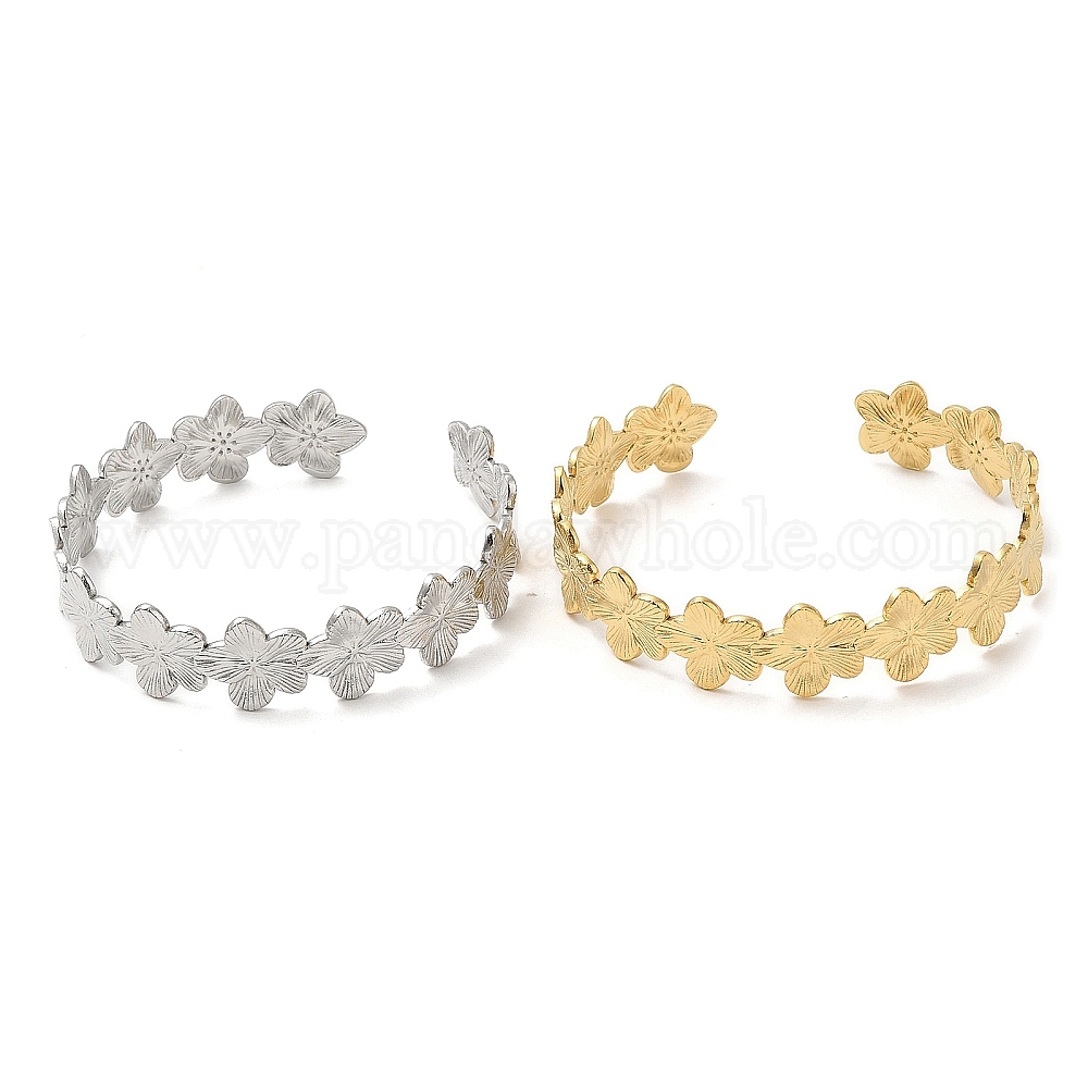 304 из нержавеющей стали манжеты браслеты, открытые браслеты с цветами для женщин