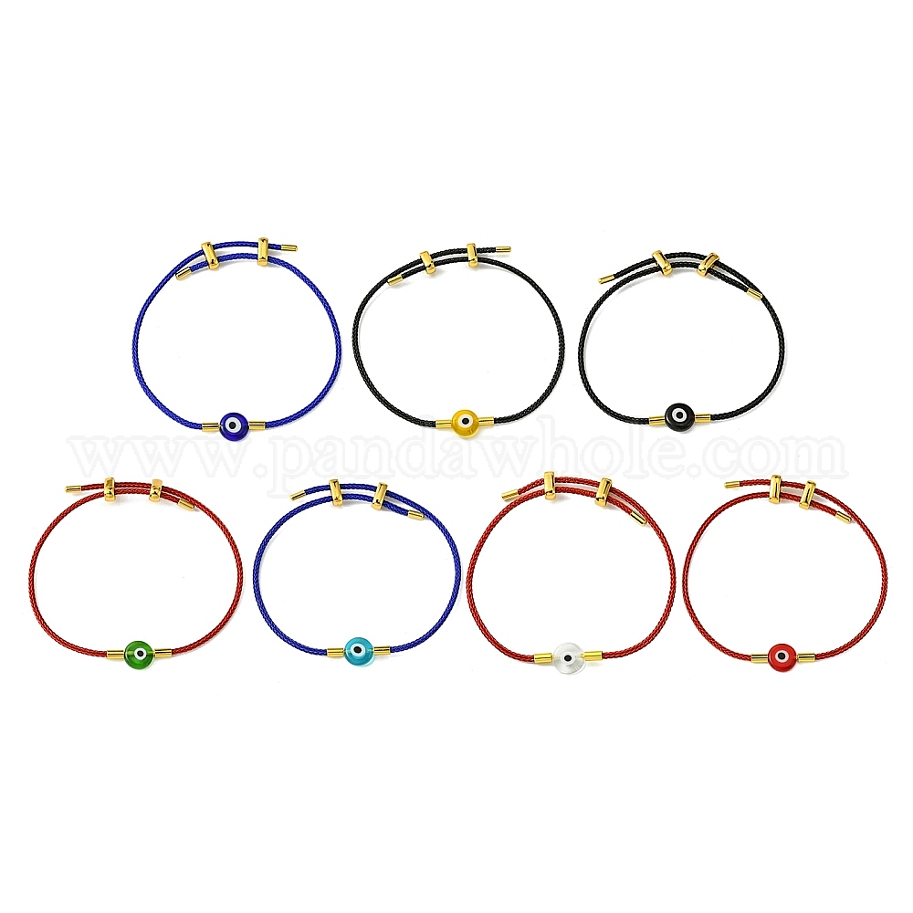 Браслет лэмпворк сглаз и латунные бусы, 304 регулируемые браслеты из нержавеющей стали с витой веревкой для женщин