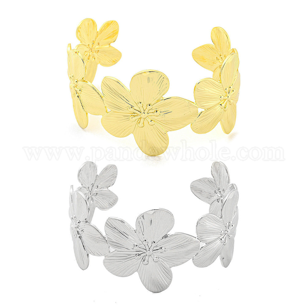 Цветочная стойка с латунным покрытием и открытыми браслетами-манжетами для женщин, без кадмия и без свинца, долговечный