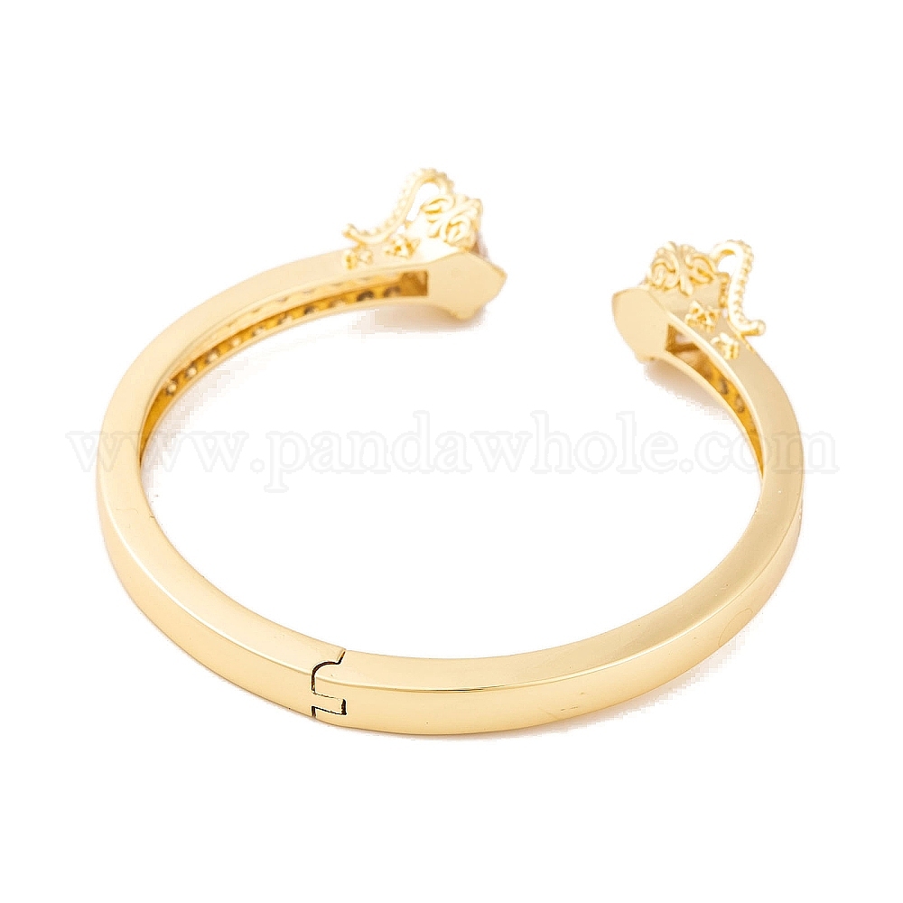 • Золотой Женские открытые браслеты-манжеты из латуни дракона с прозрачным фианитом и стеклом, золотые, внутренний диаметр: 2-1/8 дюйм (5.4 см)
