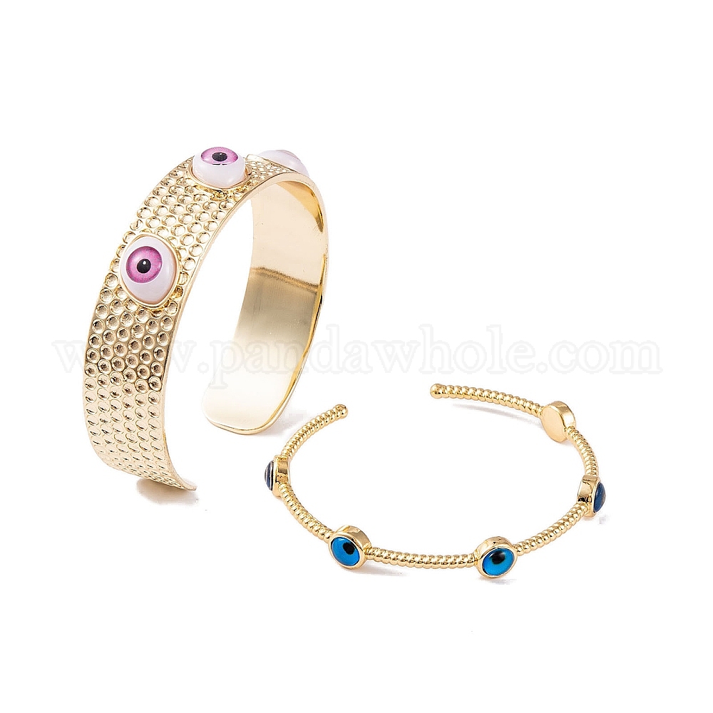 Женские латунные эмалированные открытые браслеты-манжеты от сглаза, настоящая золотая пластина 18k