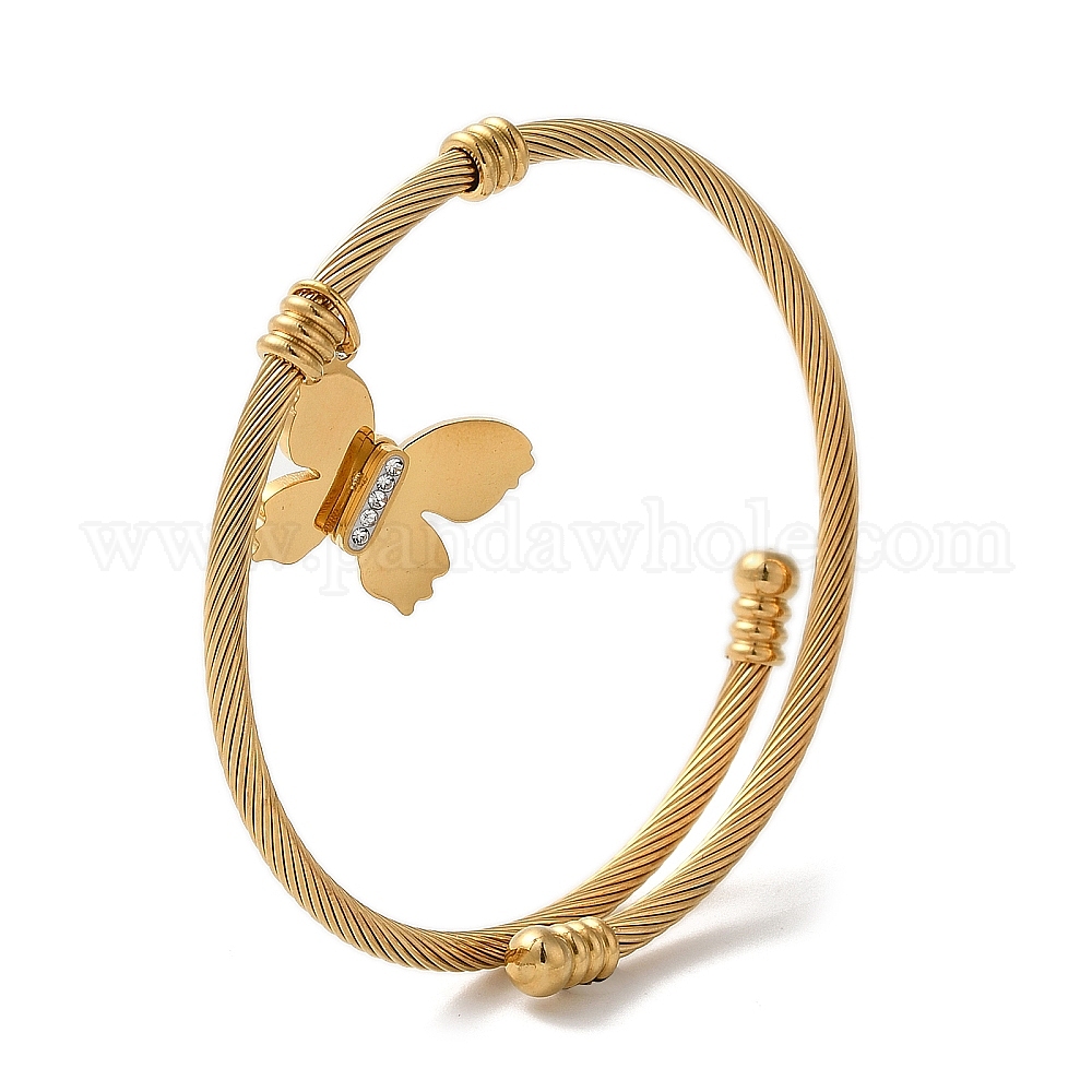 Браслеты-манжеты из нержавеющей стали с подвесками в виде бабочки, украшенные кристаллами и стразами, для женщин