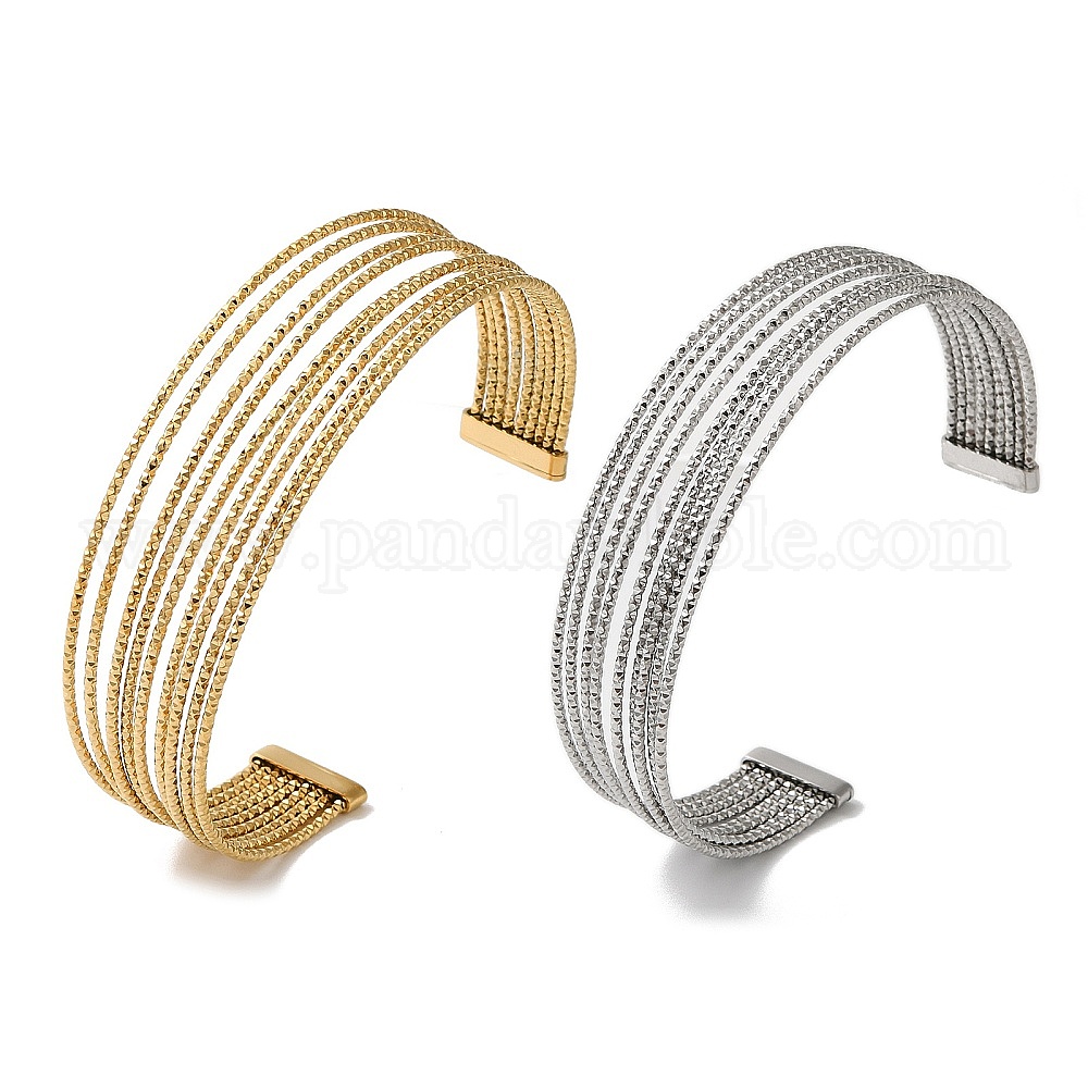 Полые полосатые браслеты-манжеты из нержавеющей стали для женщин