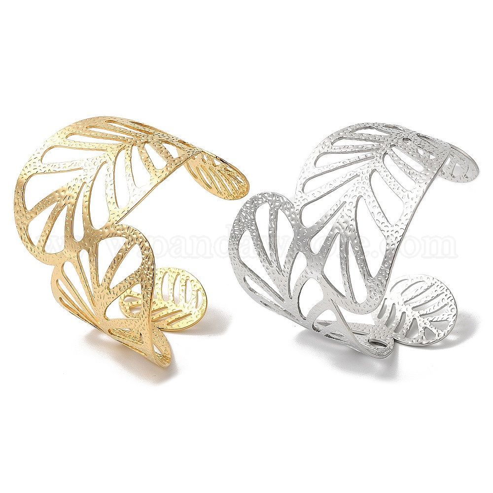 Открытые браслеты-манжеты из нержавеющей стали с полыми листьями для женщин