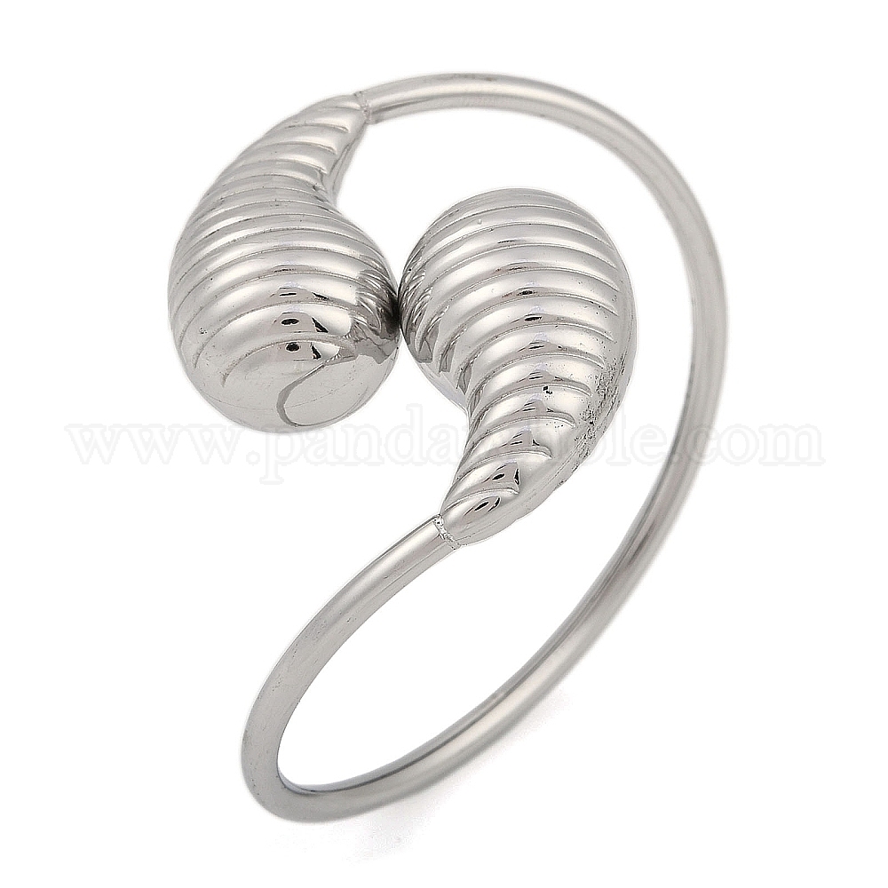 • Нержавеющая Сталь Цвет Не тускнеют 304 браслеты из нержавеющей стали с рифленой каплевидной формой, цвет нержавеющей стали, внутренний диаметр: 1-3/4×2-3/8 дюйм(4.4×5.9см)