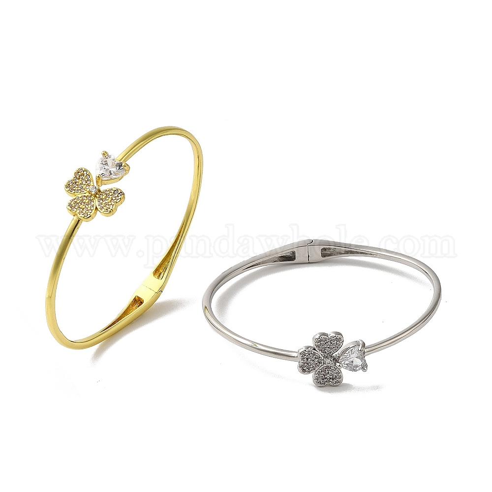 Браслеты с подвеской в виде клевера и сердца из латуни с паве из прозрачных кубических цирконий, без свинца и без кадмия, долговечный