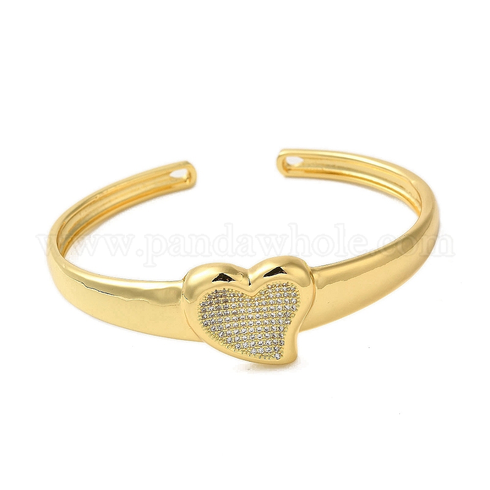 Браслеты-манжеты в форме сердца с прозрачным кубическим цирконием, латунные браслеты с покрытием для женщин, без кадмия и без свинца, долговечный (02X37Y)