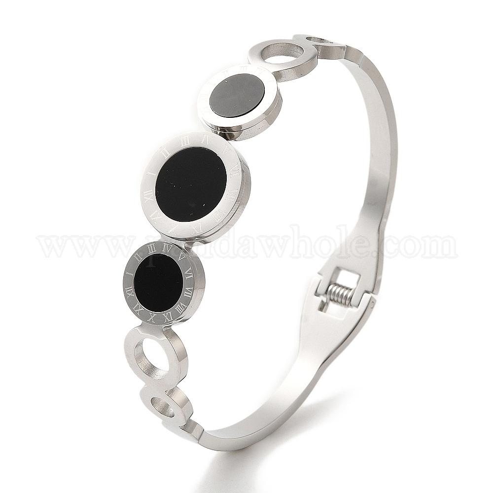 • Нержавеющая Сталь Цвет Регулируемые 304 браслеты из нержавеющей стали для женщин, эмалевые плоские круглые браслеты с римскими цифрами, цвет нержавеющей стали, внутренний диаметр: 1-7/8x2-1/4 дюйм (4.7x5.8 см)