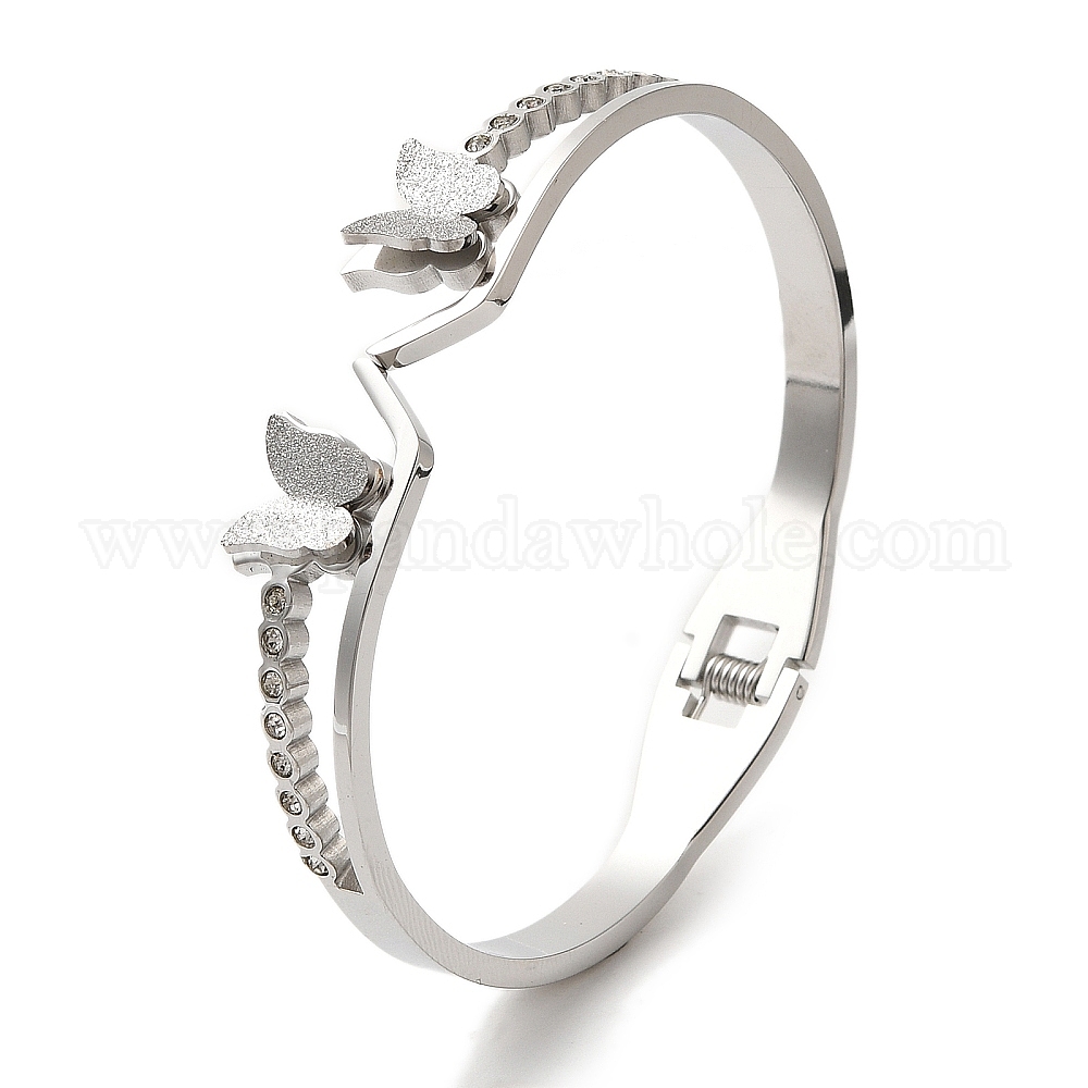 Бабочка 304 браслеты из нержавеющей стали, регулируемые браслеты со стразами для женщин