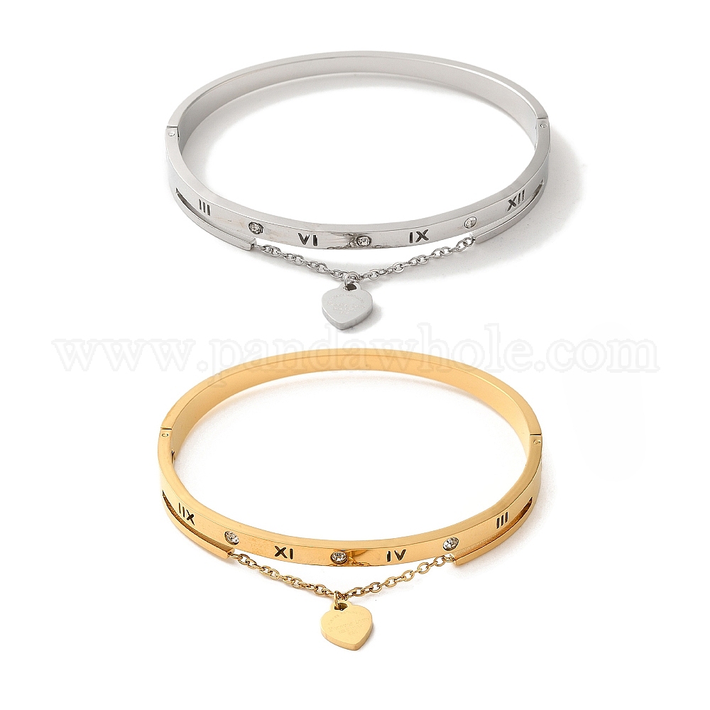 Регулируемое вакуумное покрытие 304 браслеты из нержавеющей стали, Браслеты со стразами в форме сердца для женщин