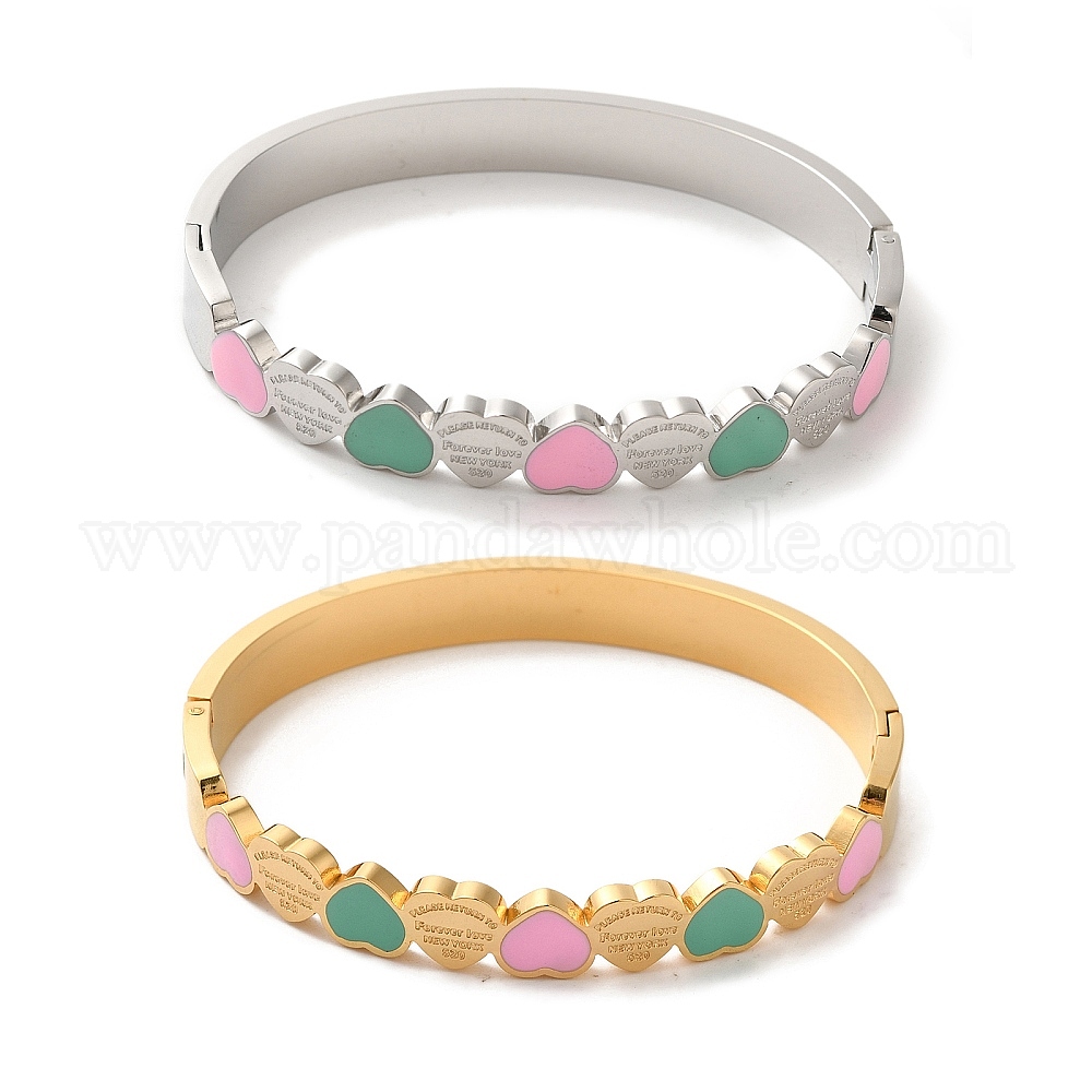 Регулируемые браслеты с эмалью в форме сердца для женщин, вакуумное покрытие 304 браслеты из нержавеющей стали