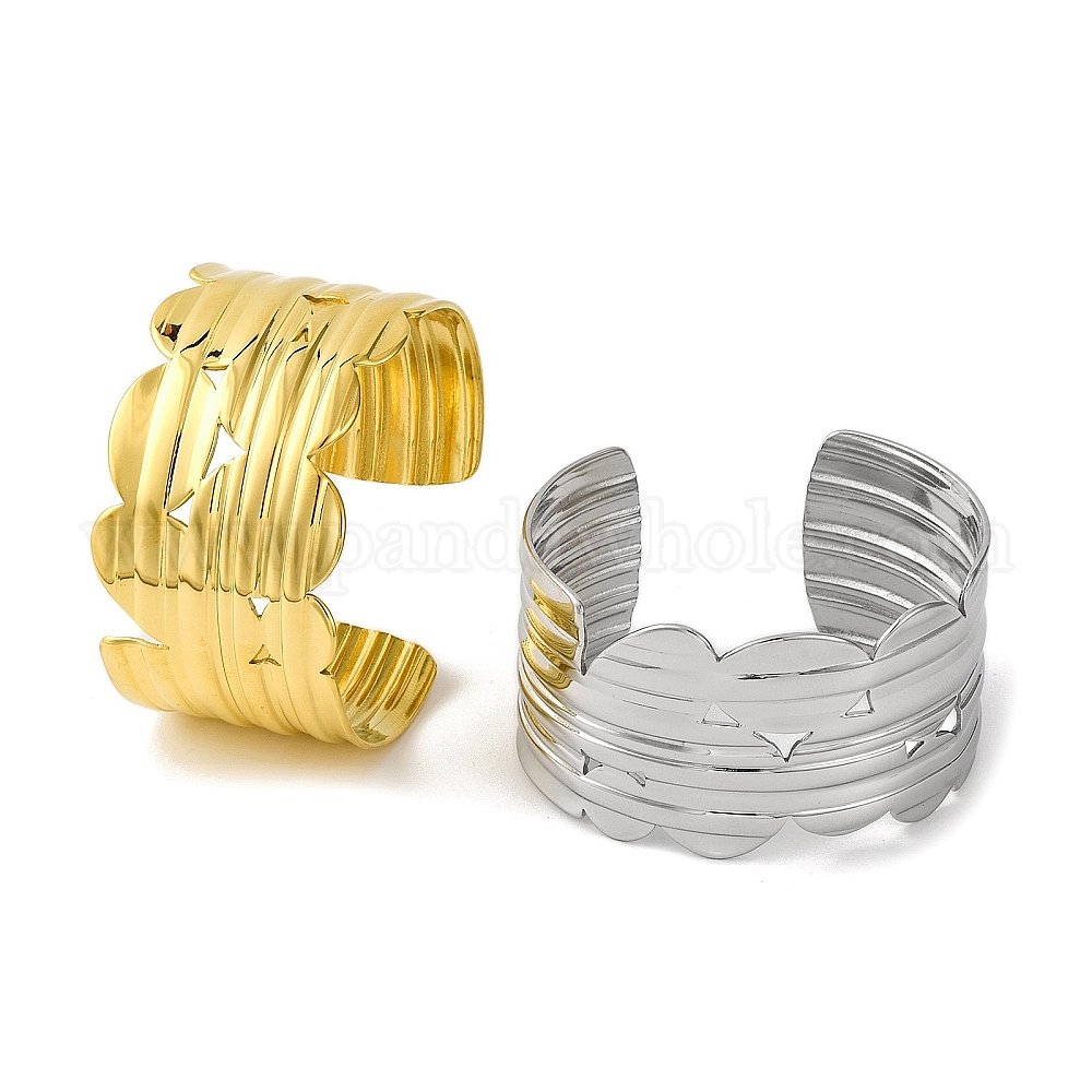 Рифленые широкие 304 браслеты-манжеты из нержавеющей стали для женщин