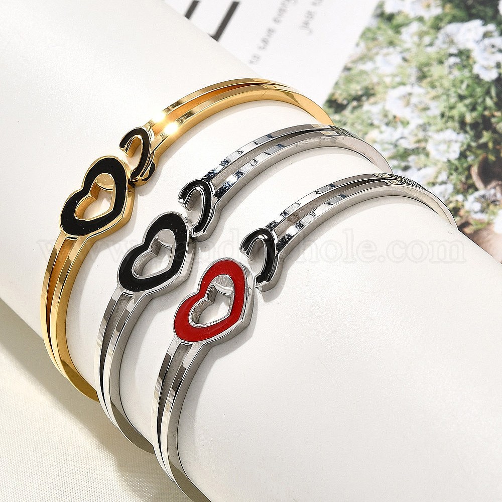 304 женские шарнирные браслеты из нержавеющей стали, с эмалью, сердце