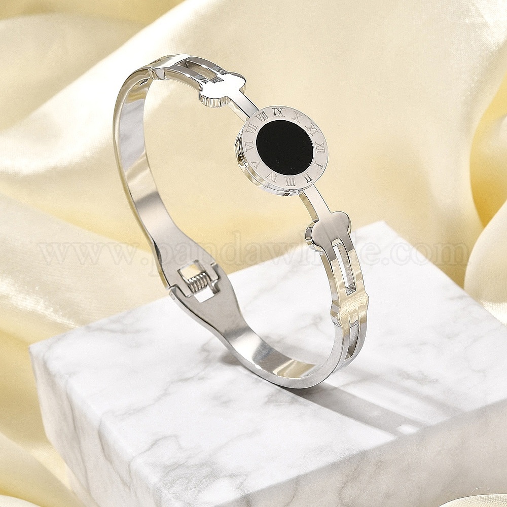 304 женские шарнирные браслеты из нержавеющей стали, с эмалью, плоские круглые с римскими цифрами