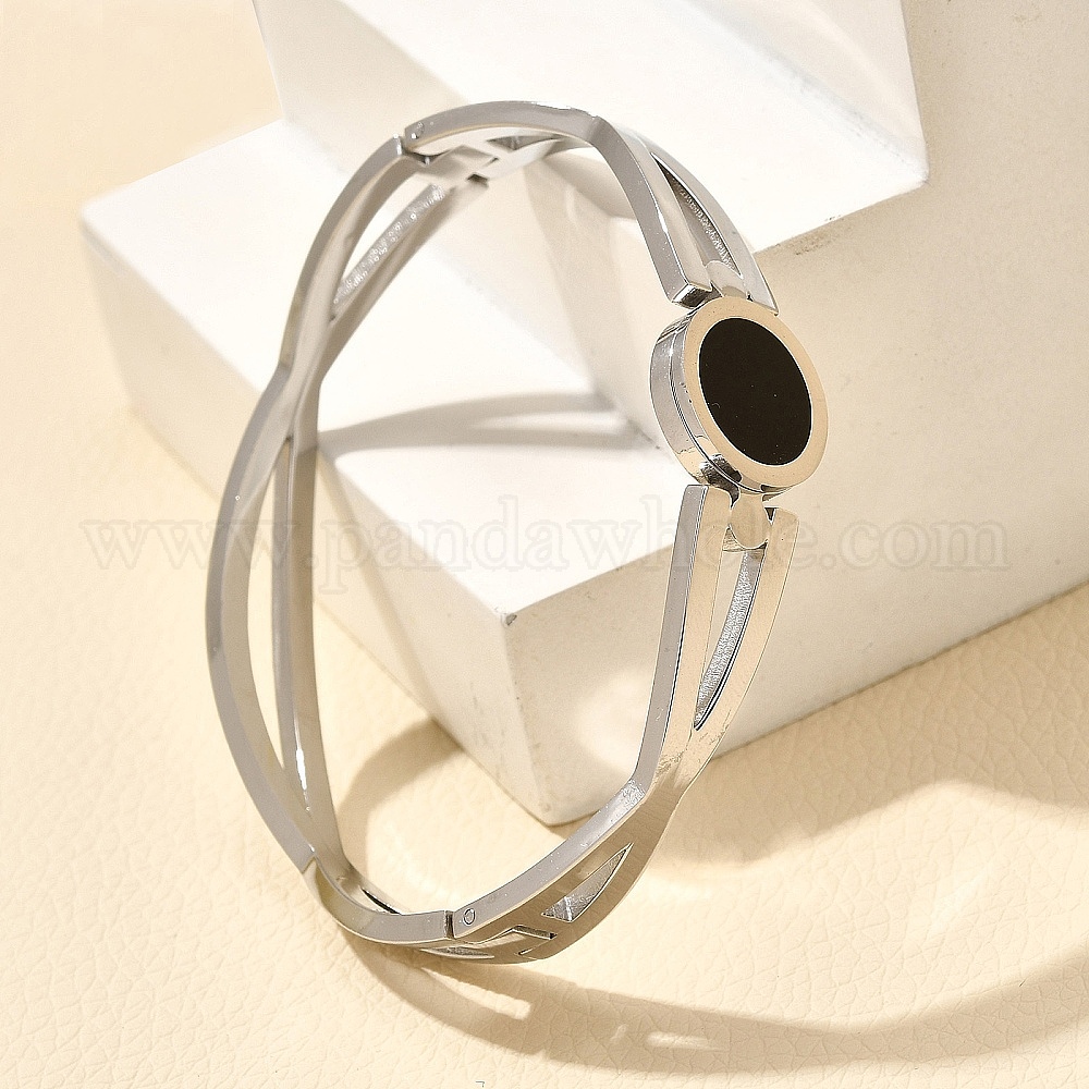 304 браслеты из нержавеющей стали с эмалевым покрытием для женщин, плоско-круглые