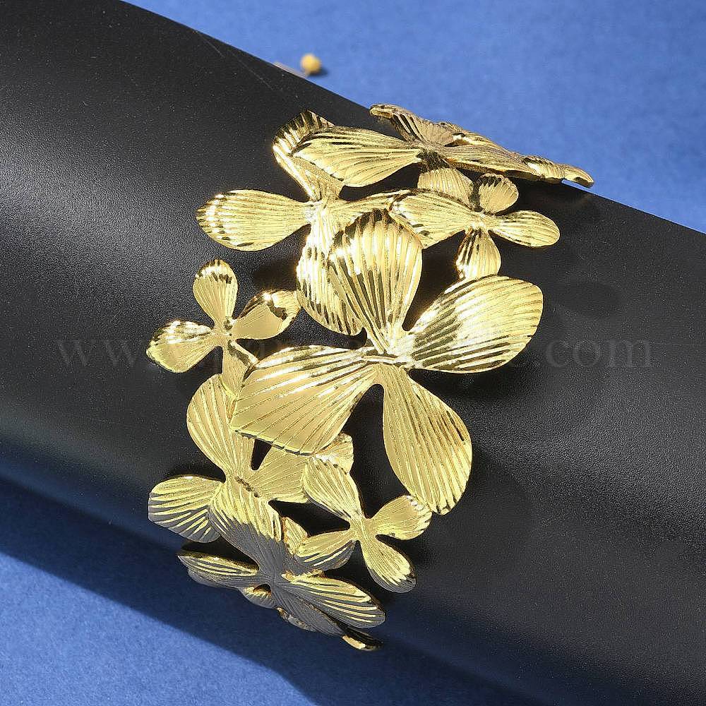 • Настоящее золото 18K 304 женские браслеты с открытыми манжетами из нержавеющей стали, цветок, реальный 18 k позолоченный, 1-5/8 дюйм (4.1 см), внутренний диаметр: 2-3/8x2 дюйм (5.95x5.05 см)