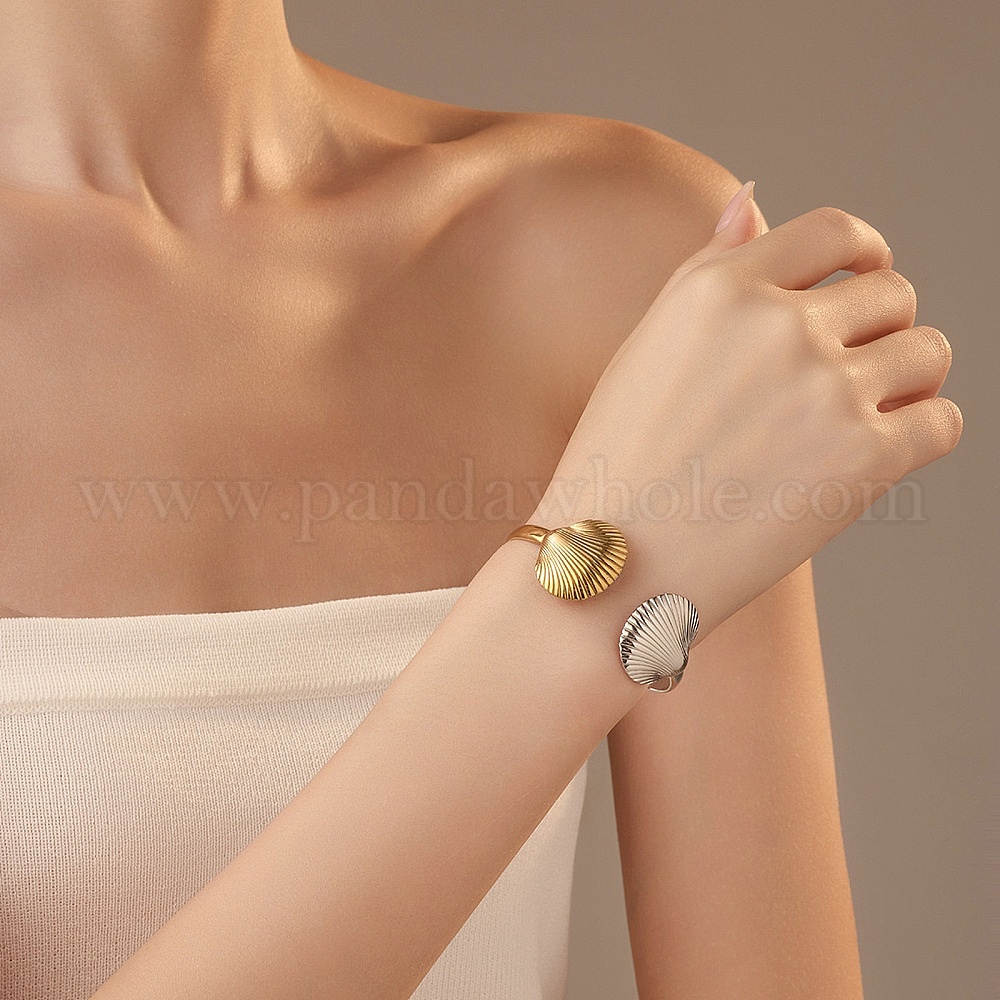 304 открытые браслеты-манжеты из нержавеющей стали для женщин, формы раковины