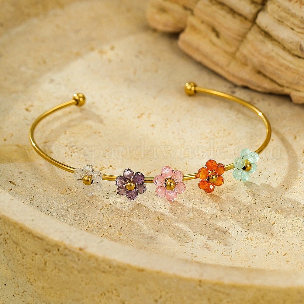 304 браслеты-манжеты из нержавеющей стали, браслеты с крутящим моментом для женщин, цветок, с розовым кварцем