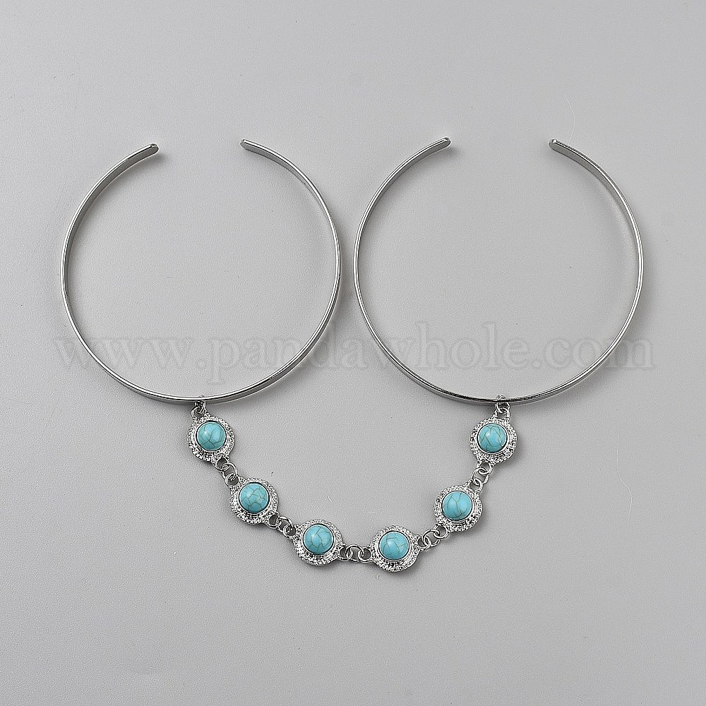 Браслеты-манжеты из сплава на плечо для женщин, плоская круглая синтетическая бирюза