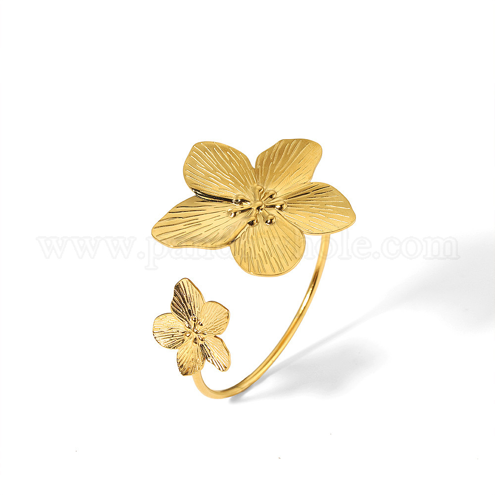 • Золотой 304 Браслет-манжета с цветком из нержавеющей стали для женщин, винтажный аксессуар для европейского и американского стиля, золотые, внутренний диаметр: 2.28 дюйм (58 мм)