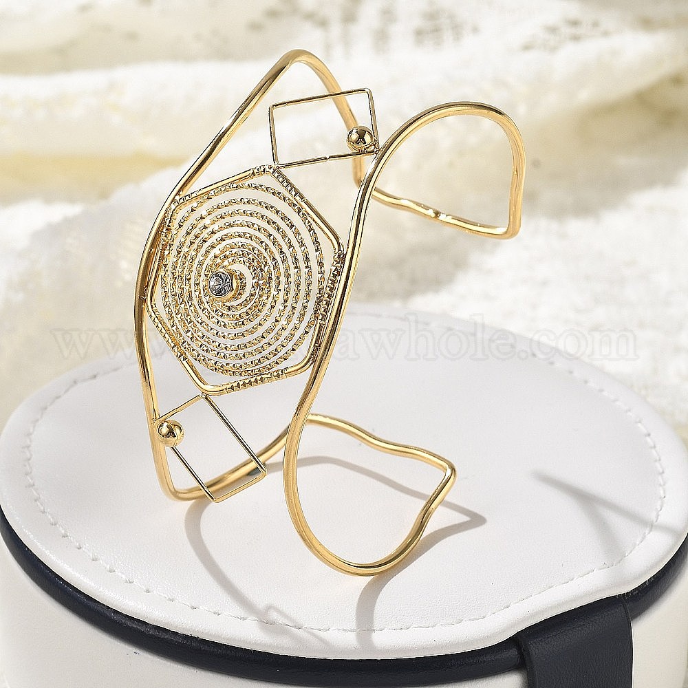 304 женские браслеты-манжеты из нержавеющей стали, шестиугольник, со стразами