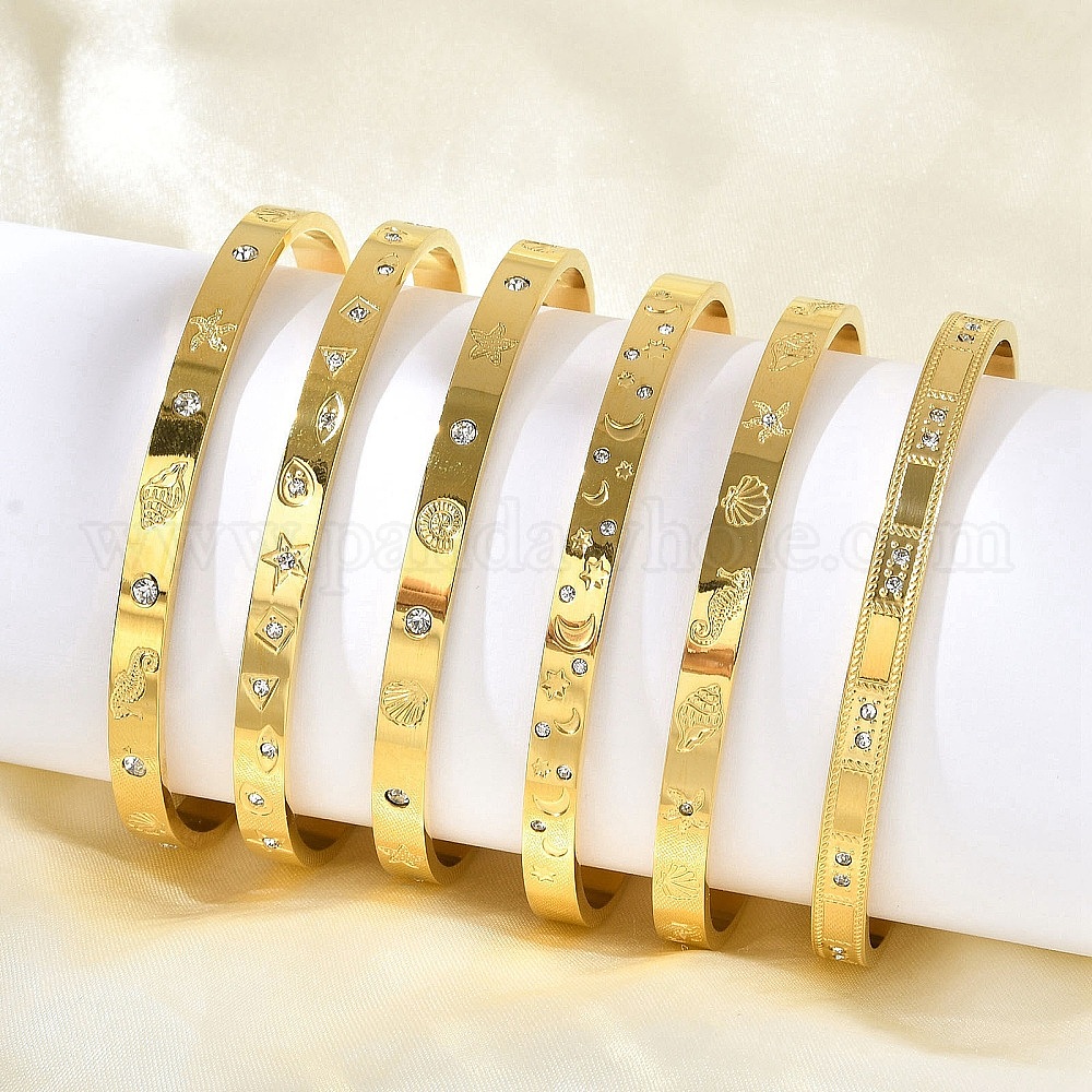 304 из нержавеющей стали манжеты браслеты, с кубического циркония, реальный 18 k позолоченный