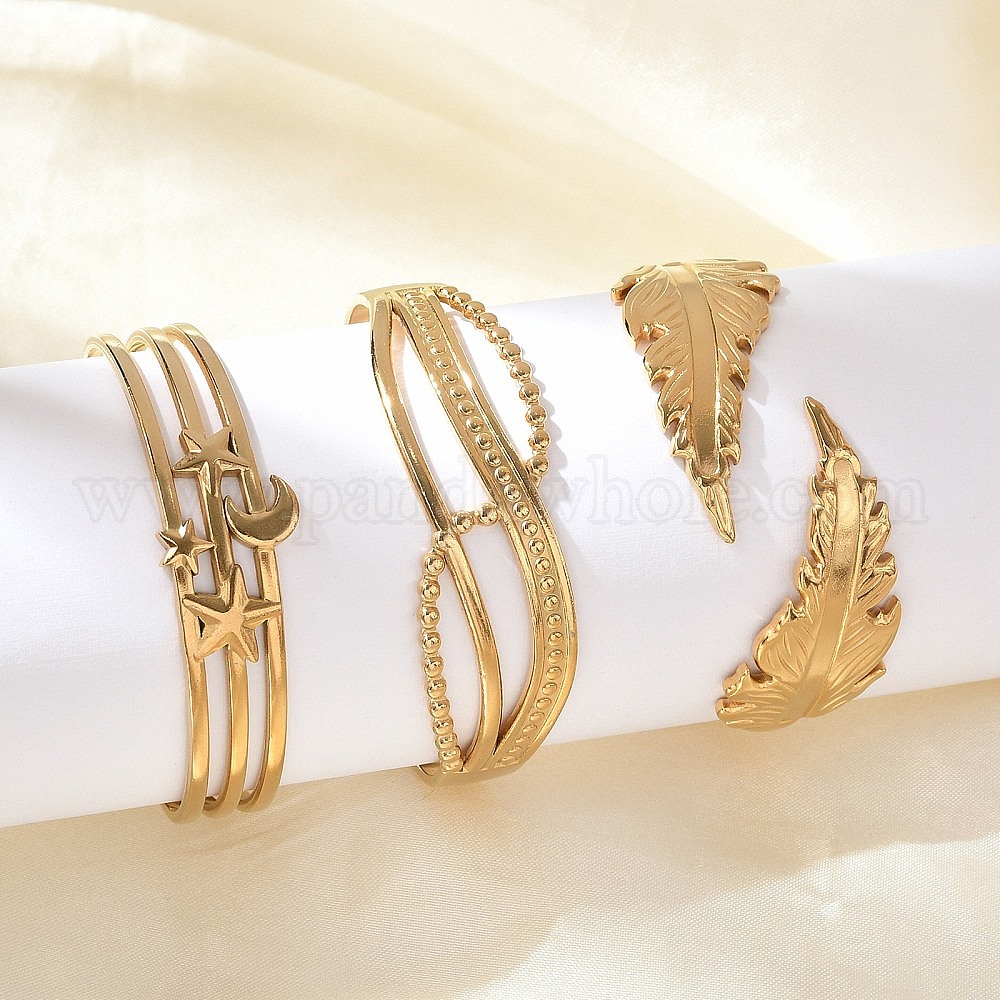 • Звезда 304 женские браслеты-манжеты из нержавеющей стали, реальный 18 k позолоченный, звезда, 5/8 дюйм (1.6 см), внутренний диаметр: 2 дюйм (5.2 см)