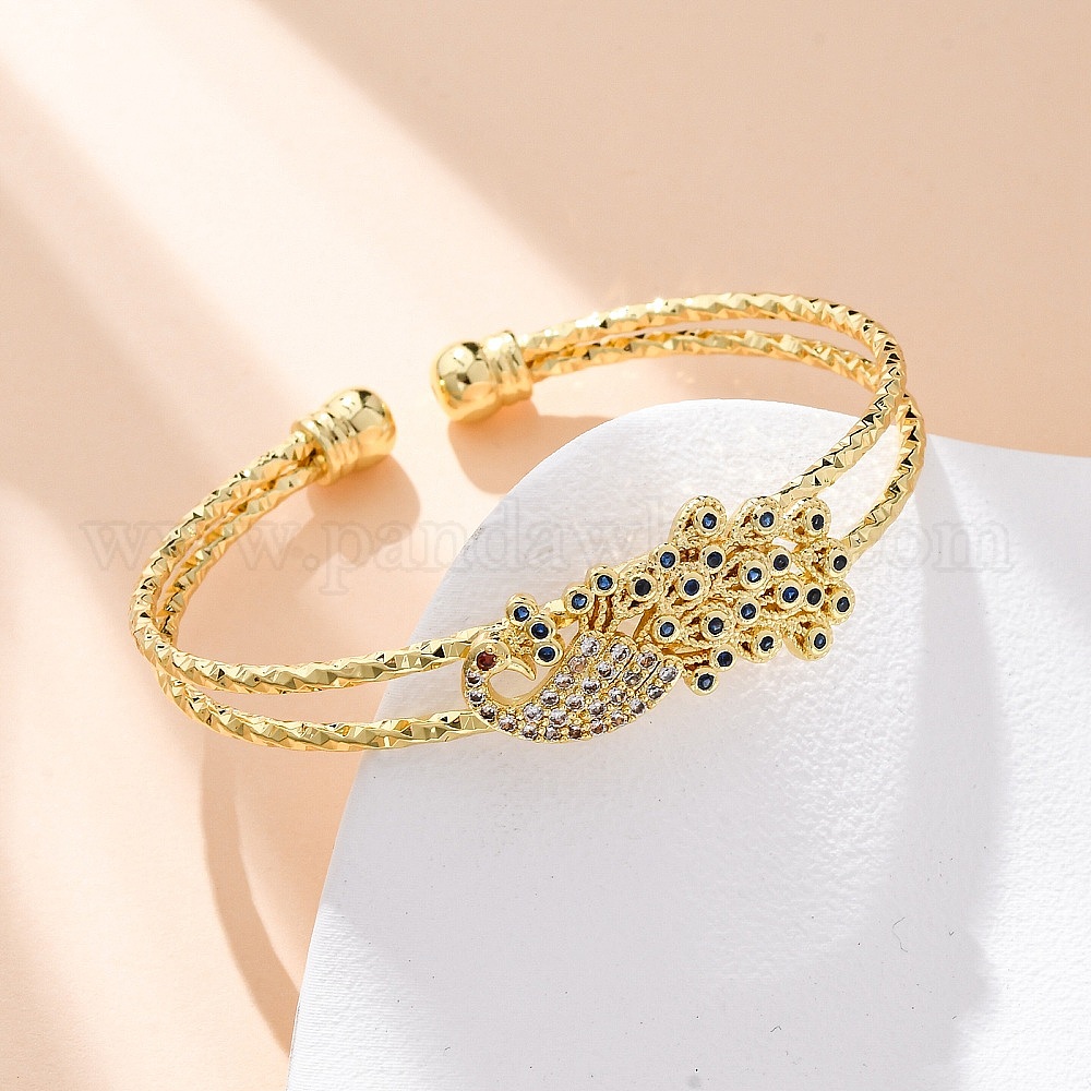 Латунные браслеты-манжеты с микропаве из кубического циркония для женщин, павлин, стойки покрытие, без кадмия и без свинца, прочное покрытие