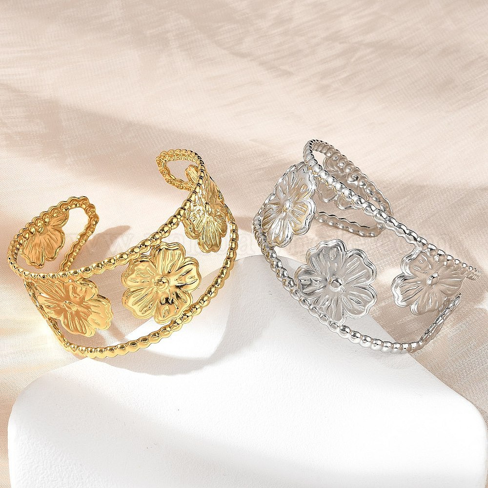 304 женские браслеты-манжеты из нержавеющей стали, цветок