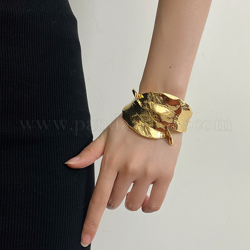 • Золотой Браслеты-манжеты из сплава для женщин, кудрявый лист, золотые, внутренний диаметр: 2~2-5/8 дюйм (5.2~6.65 см)