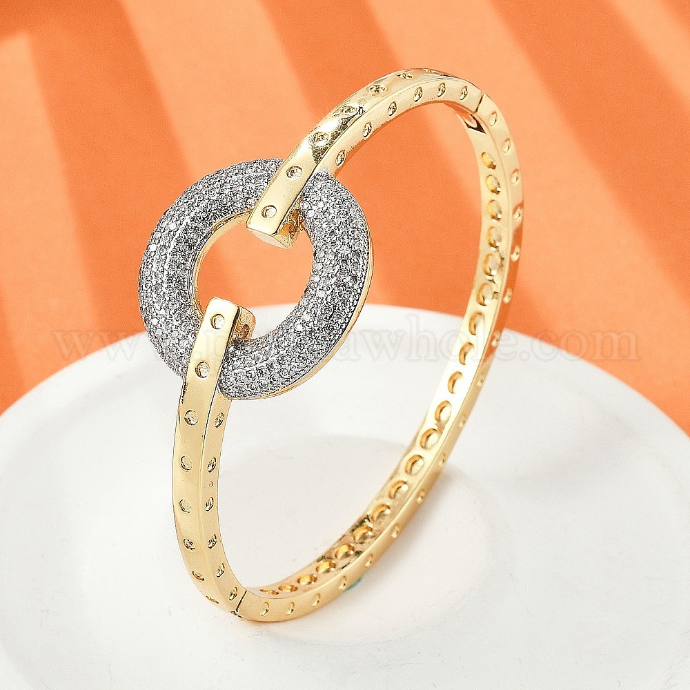 Женские браслеты на шарнирах из латуни с микропаве и прозрачным фианитом, плоско-круглые, без кадмия и без свинца, стойки покрытие, долговечный