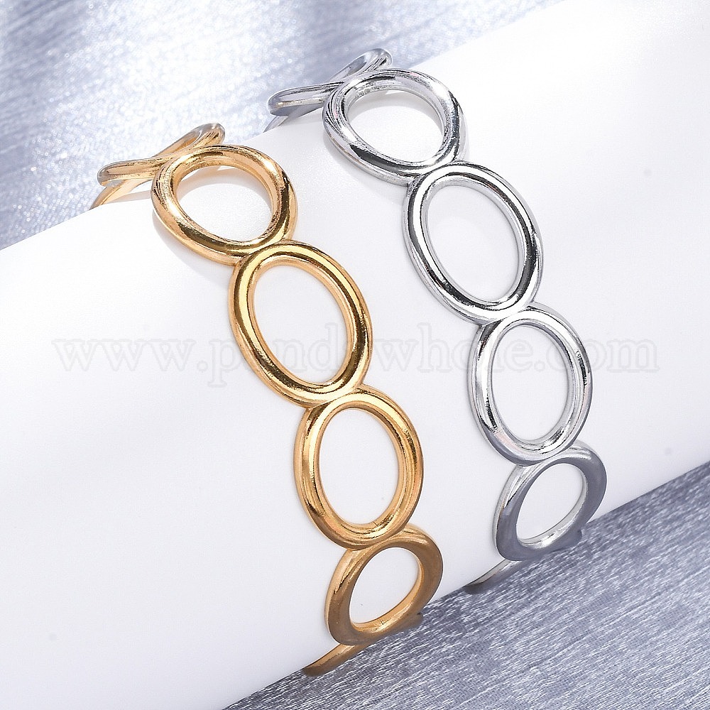 • Золотой 304 женские браслеты-манжеты из нержавеющей стали, овальные, золотые, 5/8 дюйм (1.5 см), внутренний диаметр: 2 дюйм (5 см)